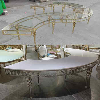 Elegante tavolo da banchetto rotondo in oro per feste e ricevimenti dell'hotel